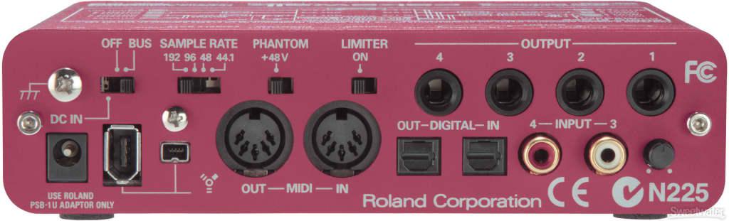 Задняя панель: входные разъемы 3-4 (тип RCA) Выходные разъемы 1–4: 1/4-дюймовый джек, балансный Разъемы MIDI: (In, Out) Разъемы FireWire (6-пиновый и 4-пиновый)
