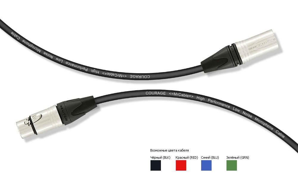 XLR (мама) - XLR (папа) (5,0м), очень гибкий, подходит для использования как в студии так и на сцене, контакты разъемов покрыты серебром, возможный цвет провода: черный(BLK), зелёный(GRN), красный(RED), синий(BLU)