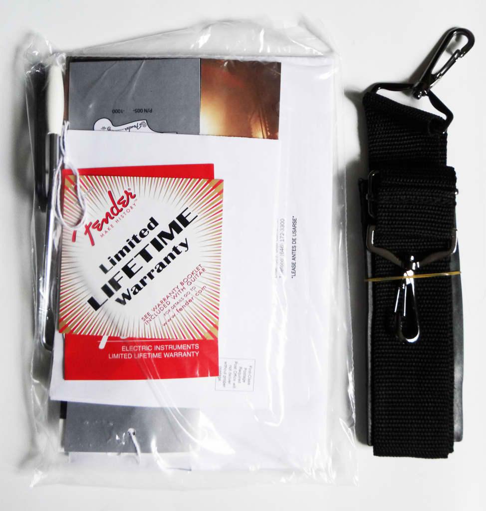 Fender cтратокастер со встроенным VG процессором, поставляется в мягком чехле с фирменными логотипами Fender и Powered by Roland, цвет чёрный, с белой накладкой.