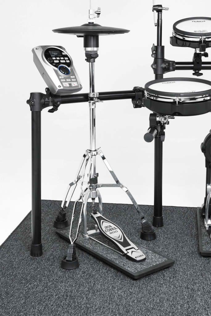 Инновационная технология Noise Eater от Roland позволяет заниматься на электронной ударной установке в квартире, не мешая близким и соседям. Одна из уникальных разработок V-Drums - сетчатые пластики. Они практически бесшумны, и это позволяет играть на установке в тех местах, где невозможно поставить аккустические барабаны. Тем не менее, при игре в пэд бас-бочки производится вибрация, которая очень хорошо слышна этажом ниже.