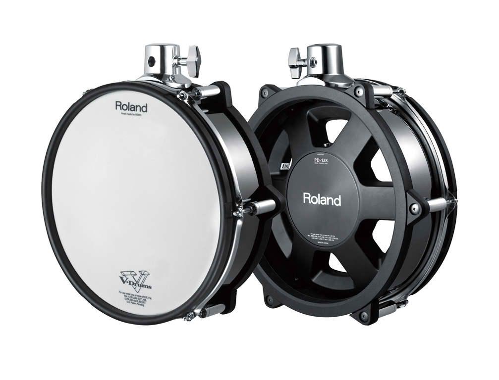 Специально для 12-дюймового пэда установки TD-30 был разработан новый сенсор обода. Благодаря нему звучание римшота стало ещё более реалистичным, и у него появился новый параметр - степень глубины звучания. Поверхность пэдов можно заменять варианты других цветов. Пэд выпускается в двух вариантах - PD-128-BC (для томов) и PD-128S-BC (для малого барабана).