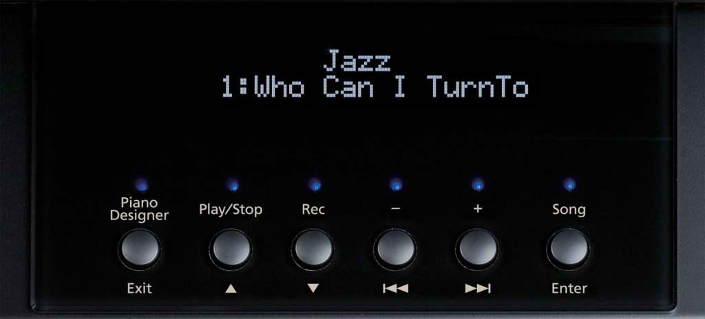 Органы управления: выбор пьесы Song Selеct, воспроизведение/остановка Play/Stop, запись Rec, предыдущий фрагмент/быстрая перемотка, следующий фрагмент/быстрая перемотка, приглушение трека (уровень громкости регулируется) Melody Guide (Track mute volume),
