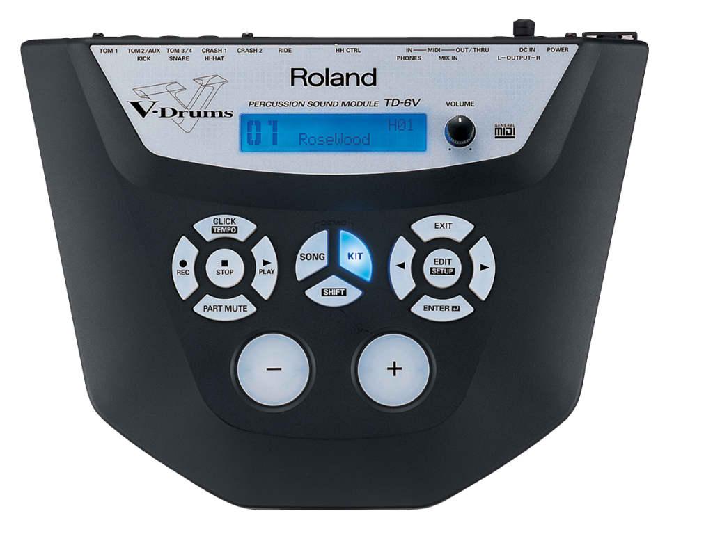 Электронная ударная установка TD-6KW представляет собой комплект виртуальных пэдов, включая новый сетчатый малый барабан (PDX-8) и улучшенный, электронный Хай-Хэт (CY-5). Ещё одной новинкой в “шестом” комплекте стал барабанный стенд MDS-6C (в комплект не входит приобретается отдельно), превосходно дополнивший TD-6KW своими привлекательными изогнутыми трубами и отделкой “под тёмный металлик”. * Новый сетчатый малый барабан (PDX-8) с расширенным 10-дюймовым размером обода дает более реальные ощущения от игры по ободку (римшот). * Новый Хай-Хэт (CY-5) обладающий естественным ходом и широкой поверхностью для игры, создаст множество натуральных ощущений при игре или на выступлении. * Новый барабанный стенд (MDS-6C) с привлекательными изогнутыми трубами, отделкой “под тёмный металлик” и ключом для настройки барабанов. * Комплект содержит в себе звуковой модуль TD-6V, имеющий более 1000 звуков высшего качества. Мощный процессор Ядром комплекта TD-6KW является 64-голосный барабанный модуль TD-6V, предлагающий более 1000 лучших барабанных/перкуссионных звуков Roland. Двухтриггерные входы позволяют играть по ободку малого барабана, томов и по краю и центру тарелок. Большие, подсвеченные кнопки и большой дисплей делают TD-6V функциональным и удобным в использовании. Вертикальный бас-барабан Барабанщики будут признательны комплекту TD-6KW за вертикальный бас-барабан. По сравнению с барабанами реверсивного типа, его вертикальный дизайн не только обеспечивает лучшее ощущение при игре, но и уменьшает вибрацию, так что Вы получаете только твердые звуки удара. Многие барабанщики оценят и то, что бас-барабан KD-8 позволяет использовать в работе двойные педали (кардан). PDX-8 V-пэд ™ для малого барабана Новейший пэд с сетчатым пластиком (PDX-8) содержит расширенный 10-дюймовый резиновый обод для более удобной и тихой игры. Два триггера позволяют съём сигнала с пластика и обода. CY-5 Двухтриггерная тарелка для хай-хэта или сплэша Недавно разработанная электронная тарелка CY-5 имеет 12-дюймовую зону игры и качающийся подвес для более комфортной работы барабанщика. Тарелка также обеспечивает раздельный съём звука с центра и края. Кроме использования в качестве хай-хэта CY-5 также может использоваться в качестве дополнительной тарелки, например сплэша, в комплектах виртуальных барабанов. Барабанный стенд MDS-6C Эта привлекательная новая стойка – великолепное дополнение для комплекта TD-6KW. Стенд имеет новый дизайн с изогнутыми трубами, отделкой “под тёмный металлик” и ключ для настройки барабанов. Приобретается отдельно. Спецификация: Звуковой модуль: TD-6V – 1шт. Перкуссионные пэды: двухтриггерный пэд PD-8 – 3шт. Бас-барабан KD-8 – 1шт. Пэд с кевларовым пластиком PDХ-8 - 1шт. Тарелки: двухтриггерная т арелка CY-5 x 1шт, двухтриггерные тарелки CY-8 x 2шт. Педали: Педаль управления хай-хэт: FD-8 – 1шт. Аксессуары: Соединительные кабели jack-jack. Комплект MDS-6C: (поставляется отдельно!!!) Стенд: MDS-6C* - 1шт; • Держатель для тарелок: MDY-7U – 1шт; • Держатель для барабанов: MDH-7U – 4шт. *Отделка “под тёмный металлик”.