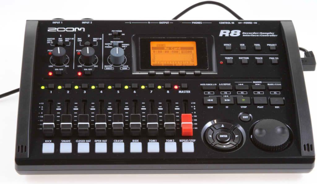 Zoom создал функционально идентичную модель рекордера R24 компактного размера. Как и его предшественник, R8 сочетает в себе четыре устройства в одном. В дополнение к 8-полосному рекордеру, с использованием карты памяти SD, R8 – это аудио интерфейс, контроллер для управления ПО и пэд-семплер.